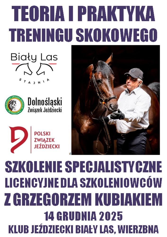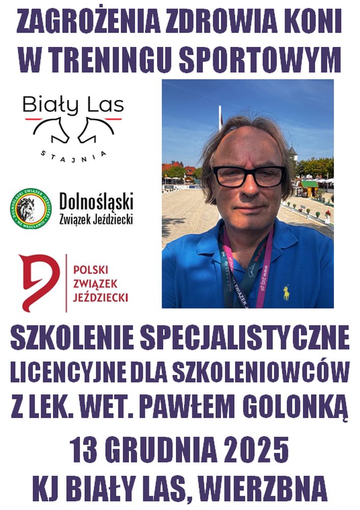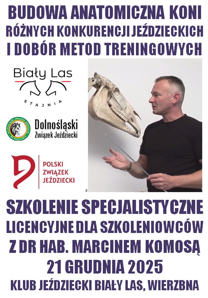 🎓 Dolnośląski Związek Jeździecki we współpracy z Ośrodkiem Jeździeckim Biały Las serdecznie zaprasza na cykl szkoleń licencyjnych zaplanowanych na grudzień 2025 roku.